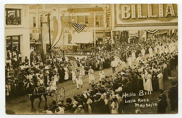 Little Rock, 1910: The Elks Club was parading through the crossroads of Arkansas where Main Street crossed 5th Street (later Capitol Ave.). Union Dentists adve…