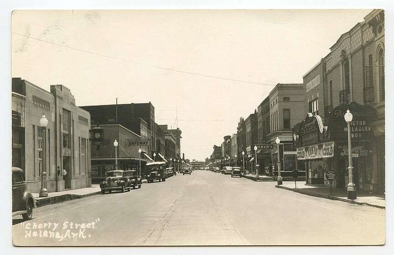 Helena, circa 1940: Cherry Street was the vibrant heart of the Phillips County seat at the time. To the right, the local movie theater was playing a Victor McLaglen movie. Much of this historic street is vacant today and in need of restoration.