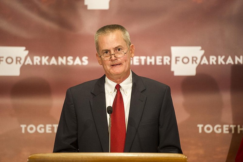 Lance Taylor, Executive Director of the Arkansas Athletics Association, addresses the media on Friday, July 31, 2020. (Arkansas Democrat-Gazette / Stephen Swofford)